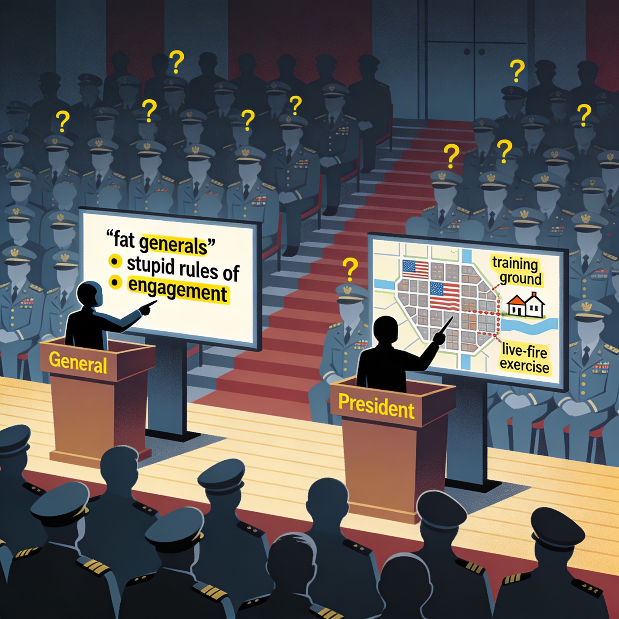 In a speech before the largest assembled gathering of US generals and admirals in American history, Hegseth derided “fat generals” and “stupid rules of engagement,” whilst President Trump, taking the stage after him, told the assembled military that American cities would serve as training grounds (Schake, 2025)—a statement whose implications became disconcertingly legible when federal forces moved against civilians in Minneapolis and beyond, leaving two American citizens dead—Renée Good on 7 January and Alex Pretti on 24 January 2026—amid a cascade of evidence that official federal accounts of both killings were, at minimum, seriously misleading (Rosenberg & ProPublica Staff, 2026; The New York Times, 2026).
