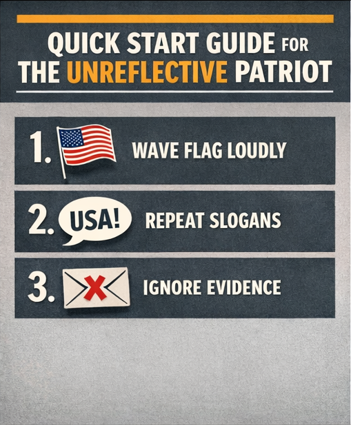 I. PROUD IGNORANCE The foundational virtue. The truly patriotic citizen understands that excessive familiarity with facts introduces hesitation, and hesitation is the enemy of conviction. A man who has read too widely cannot act decisively; a man who has read nothing at all is already halfway to greatness.